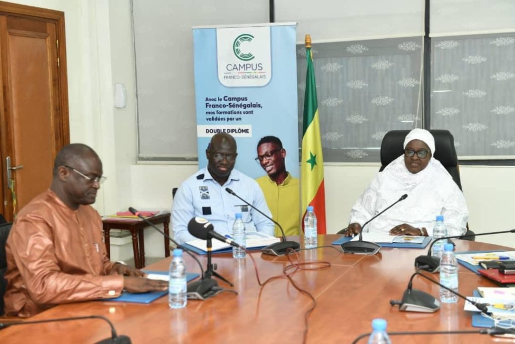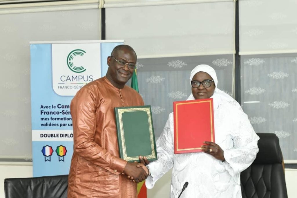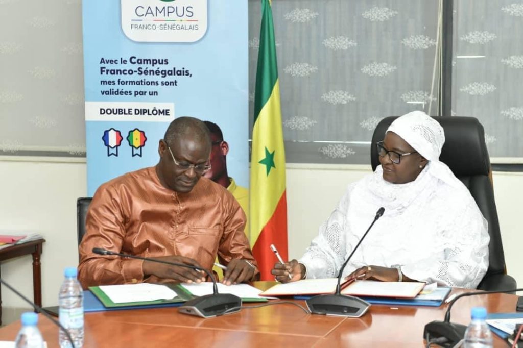 Madame le Ministre de la Santé et de l’Action sociale, Dr Marie Khemesse Ngom Ndiaye a présidé , ce jeudi, la cérémonie de signature de convention entre le MSAS et Campus Franco-Sénégalais . « Ce projet vise à définir des axes de formation innovants destinés aux personnels de santé, et de suivre de manière efficiente l’évolution dynamique du secteur de la santé.
