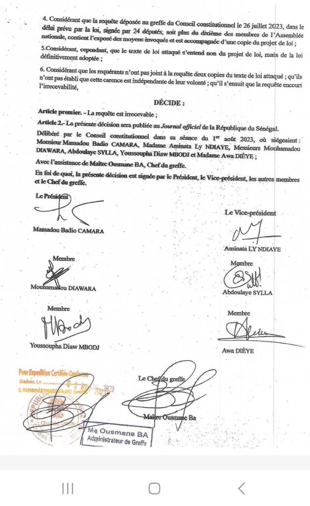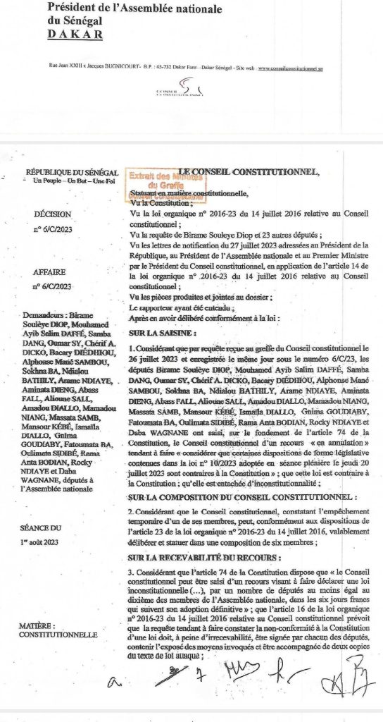 Le conseil constitutionnel a déclaré irrecevable leur recours contre les projets de loi modifiant le Code pénal et abrogeant et remplaçant les articles 29 et 87 de la Constitution. Ces parlementaires avaient saisi les sept sages pour » ralentir ou empêcher l’éligibilité de Karim et Khalifa ».