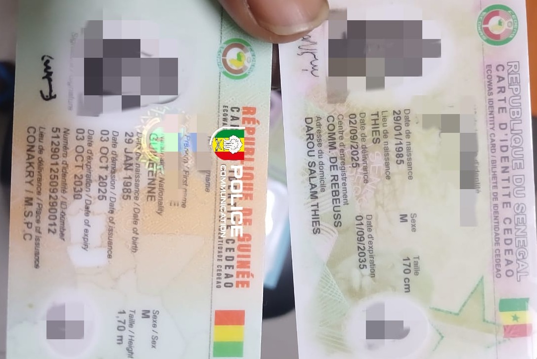 les policiers ont découvert un important stock de documents vierges ou falsifiés, issus de plusieurs localités du pays (Tambacounda, Ndame, Koumpentoum), ainsi que des pièces d’identité guinéennes et mauritaniennes.