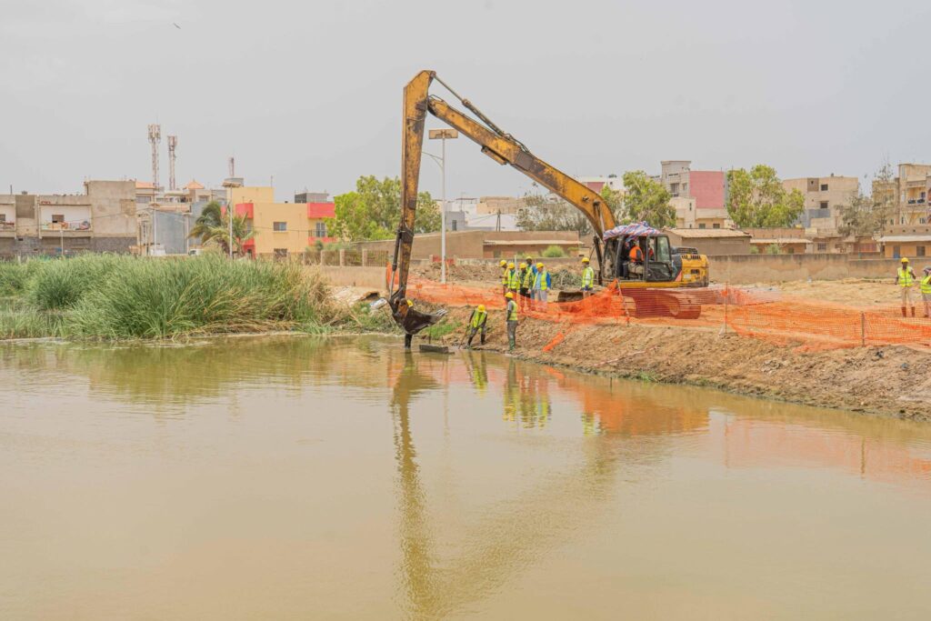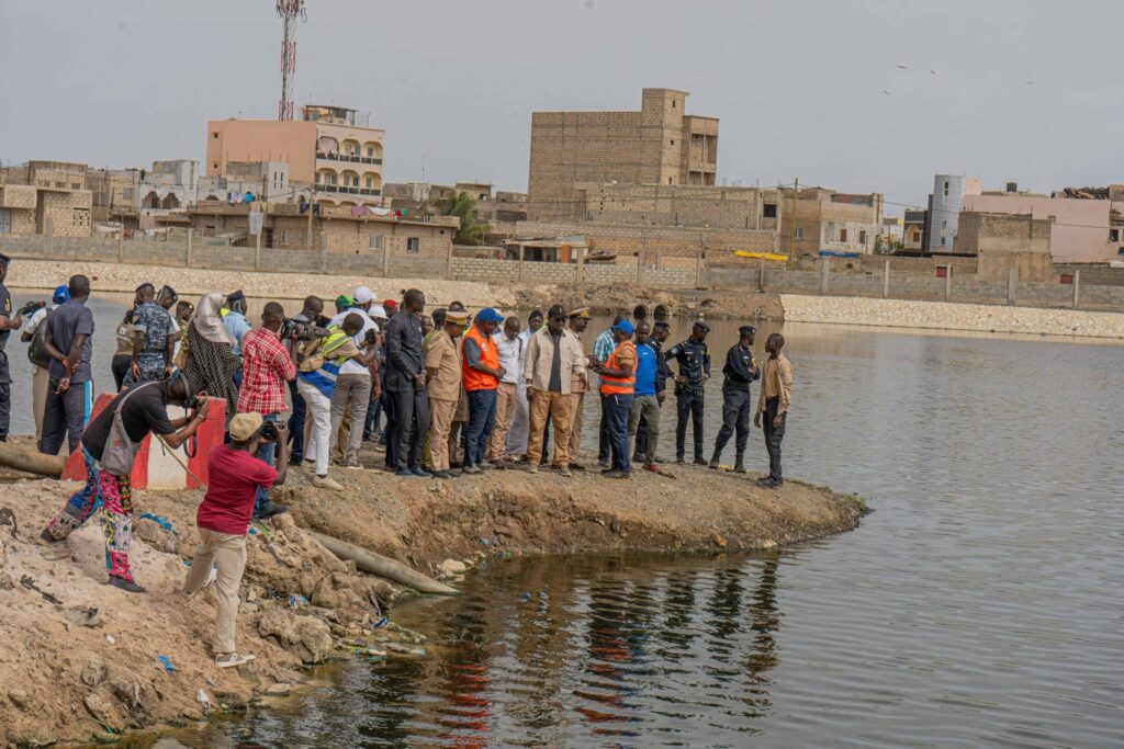 Premier arrêt à Dakar, au niveau du lac des Maristes, un point de rétention crucial. Le ministre a constaté la nécessité urgente de procéder à un faucardage — opération qui consiste à enlever les herbes et végétaux envahissants — afin d’augmenter la capacité de rétention et faciliter l’écoulement des eaux.