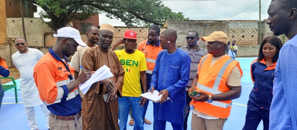 Au cours de cette réception, une visite des lieux s’est tenue. Ainsi plusieurs recommandations ont été faites par l’inspecteur des sports Tidiane Camara. A savoir, la fixation des poteaux des buts, la revue de certaines dimensions au niveau des paniers de basket,  la mise en place d’un magasin de stockage de matériels sportifs, installation d’un filet de protection entre les camps et le mûr du marché, le renforcement de la peinture étanche au sol. Suite à  toutes ces recommandations, l’entreprise Dies Décor représentée par sa directrice générale Dieynaba Cissokho et son technicien M. Bayo ont pris l’engagement d’exécuter les recommandations.