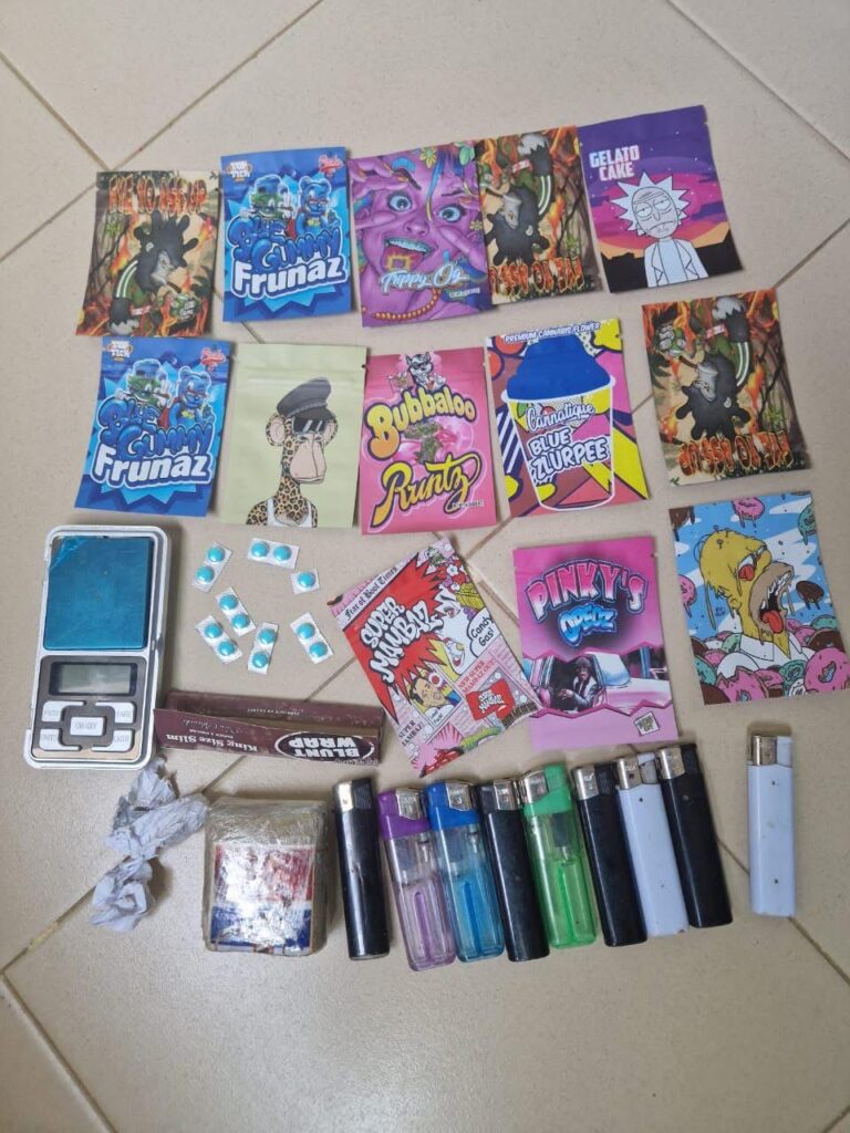 Une perquisition au domicile du présumé livreur a permis de mettre la main sur un arsenal de produits et d’équipements liés au trafic de drogue :