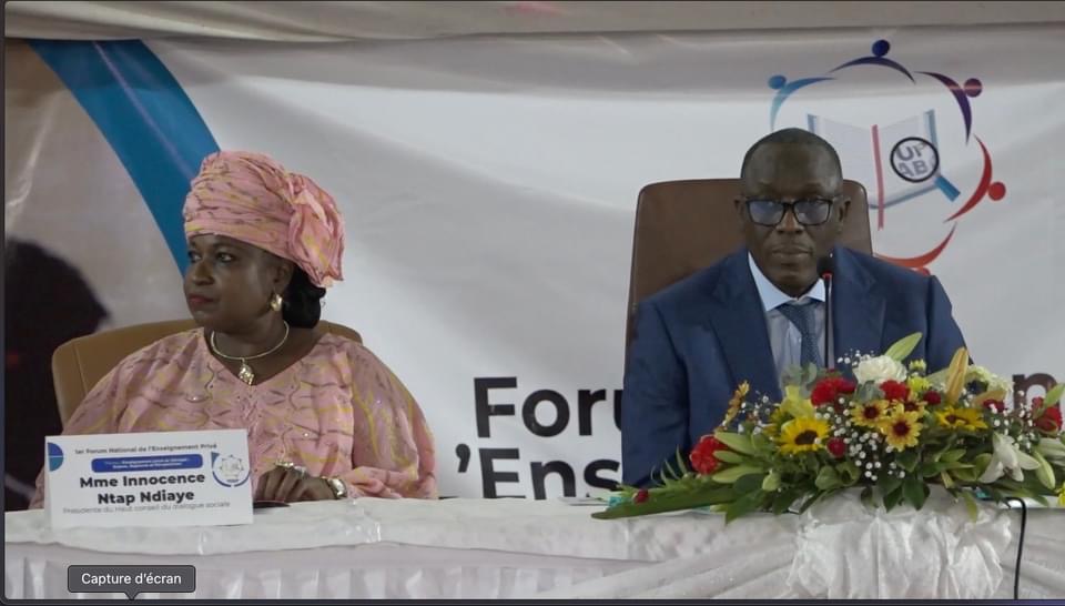 Le forum national de l’Enseignement privé a respectivement comme marraine et parrain Innocence Ntap Ndiaye et André Sonko. Dans leurs discours, la Présidente du Haut Conseil du Dialogue social et l’ancien Ministre de l’Éducation ont réitéré leur engagement à accompagner le secteur de l’enseignement privé.