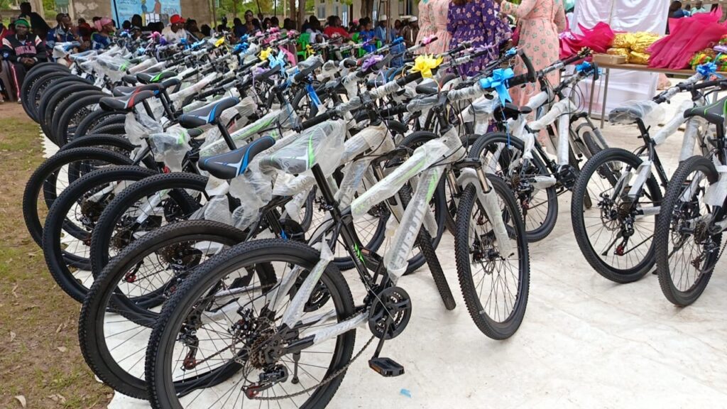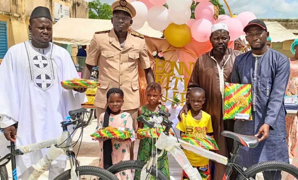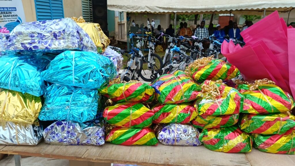 Les cadeaux, composés de vélos,de kits scolaires et de dignité,des diplômes de reconnaissance, attestations et trophées pour les partenaires.