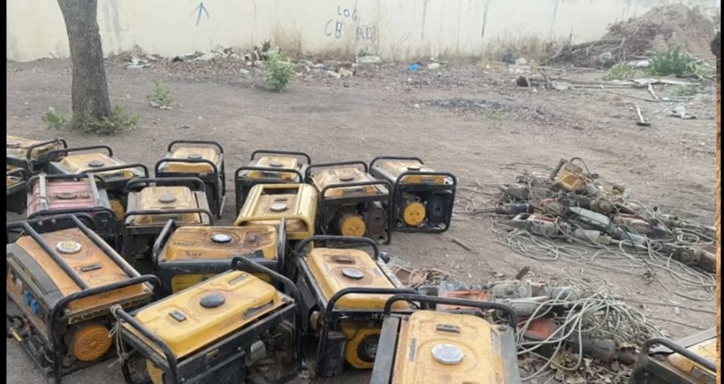 Au cours de l’opération 09 groupes électrogènes, 15 moto-pompes, 04 marteaux piqueurs, 01 moto deux roues et 01 téléphone simple de marque Tecno ont été saisis.