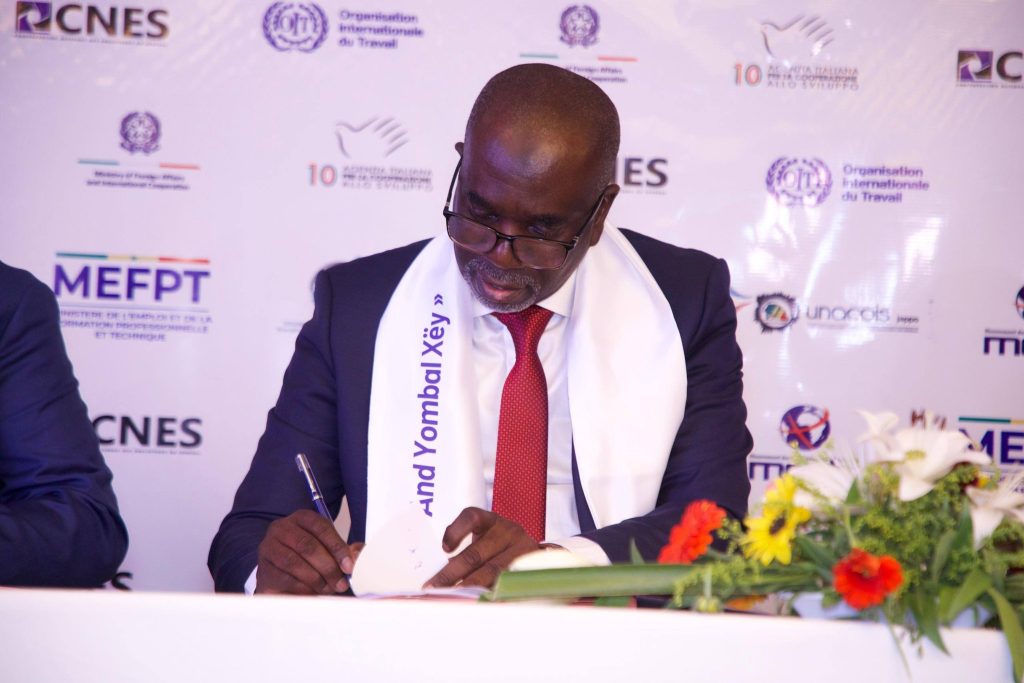 Le dispositif bénéficie également de l’appui de partenaires techniques et financiers, notamment l’Italie à travers l’Agence Italienne pour la Coopération au Développement (AICS), représentée par son ambassadrice SE Catalina Bertolini, ainsi que l’Organisation internationale du Travail (OIT), représentée par Mme Samira Daoud. Cette coopération internationale témoigne de l’intérêt porté à cette initiative et de son potentiel en matière de création d’emplois durables et décents.