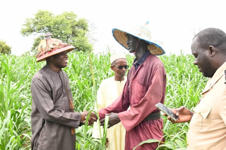 La première étape était la mairie de Thiel où les agriculteurs et le Maire de Thiel ont accueilli chaleureusement le Ministre Aly Ngouille Ndiaye avant de parler de leur joie multiple, satisfecit unanime du soutien constant de l’hôte du jour , avant de surfer sur leurs difficultés, leur besoin complémentaire en engrais et le débit de leur forage. Des réponses favorables ont été apportées ou suggérées par l’autorité ministérielle. Puis, la visite des champs a commencé. Le Village de Guelode, ou une verdoyante et bon état de développement des cultures ont été constatés. L’Exploitation de Ibrahima diop est tout simplement belle. Le niébé fourrager et le niébé graine côtoient dans un large périmètre.
