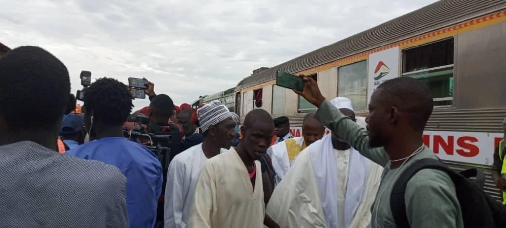 Images de l’arrivée du Train à Touba. Il n’y avait plus sifflé depuis 2017. A l’occasion, le ministre des Transports Mansour Faye est arrivé, jeudi dernier, à Touba en compagnie de Serigne Mame Thierno Mbacké, fils ainé du khalife général des mourides.