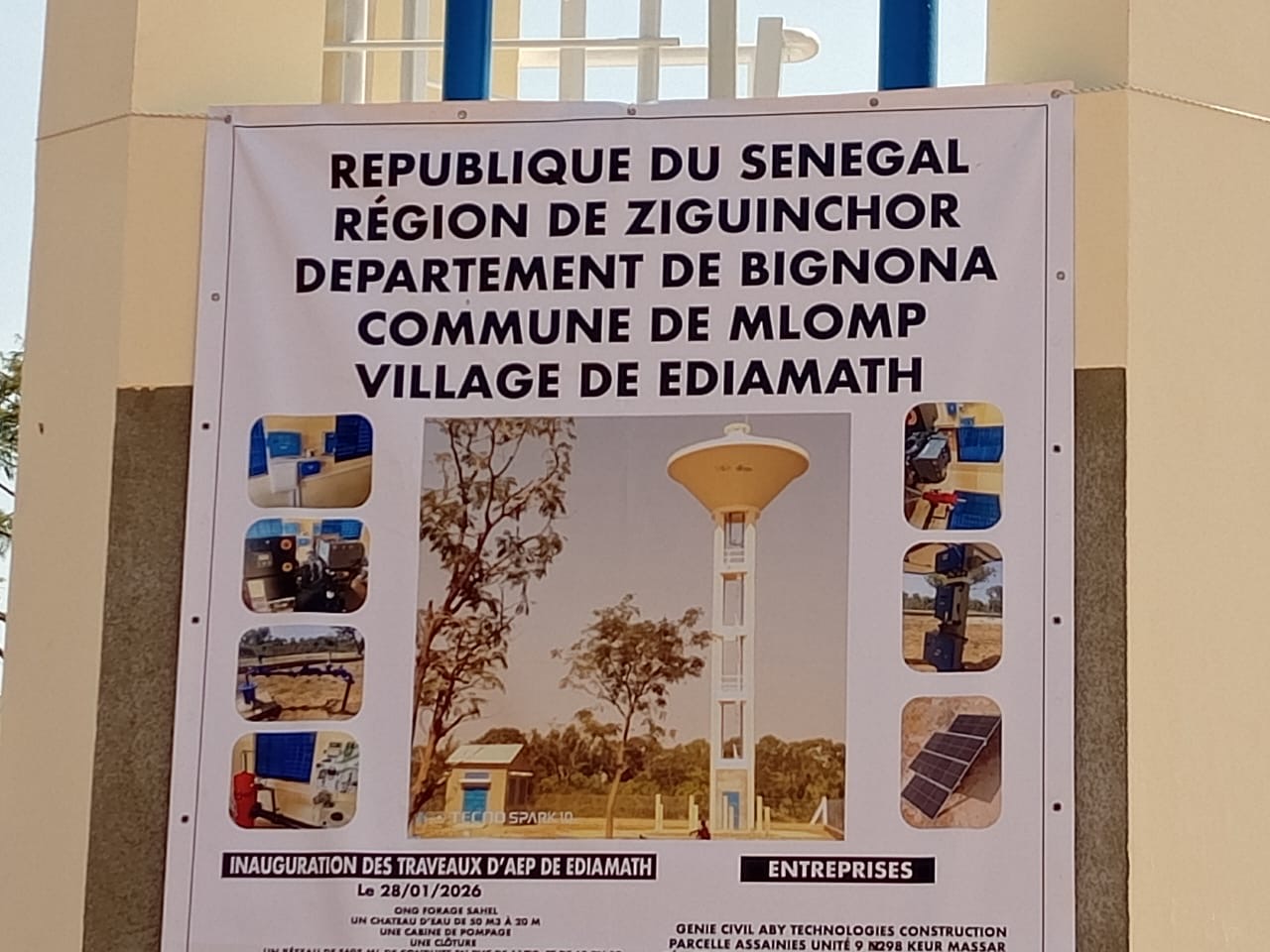 La cérémonie d’inauguration du forage du village d’Ediamath s’est tenue ce mercredi 28 janvier 2026 dans la commune de Mlomp, région de Ziguinchor. Un événement historique pour les populations locales qui, depuis plus d’une centaine d’années, n’avaient jamais eu accès à l’eau potable.
